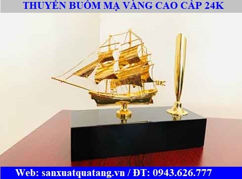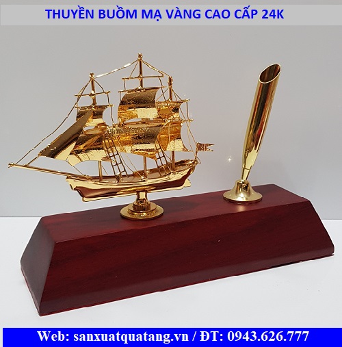 Cắm bút để bàn thuận buồm xuôi gió, thuyền buồm dát vàng quà tặng.