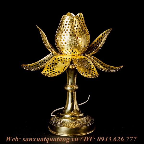 Đèn thờ hoa sen nở bằng đồng được đúc gò thủ công tinh xảo với ý nghĩa tâm linh và phong thủy.