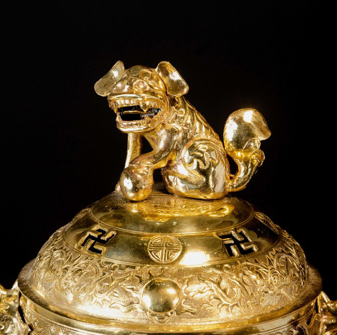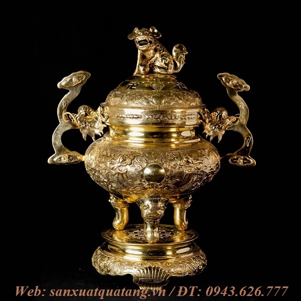 Nắp đỉnh: Mang hình dạng như chiếc bát úp ngược gắn với hình tượng con Nghê xung quanh là 3 lỗ thông nhỏ với dụng ý “Nghê thả khói”