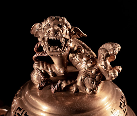 Nắp đỉnh: Mang hình dạng như chiếc bát úp ngược gắn với hình tượng con Nghê xung quanh là 3 lỗ thông nhỏ với dụng ý “Nghê thả khói”