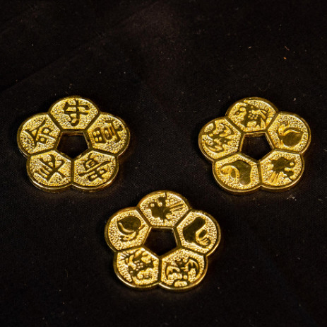 Trong phong thủy, đồng tiền hoa mai là một trong số các loại tiền xu có ảnh hưởng quan trọng đến tài lộc và vận số may mắn của con người. Như một đóa hoa với 5 cánh gắn kết với nhau tượng trưng cho 5 mệnh Kim - Thủy - Thổ - Hỏa - Mộc trong Ngũ hành. Mặt trước: THỌ (sống lâu), MỆNH (số mạng), THỦ (đứng đầu), PHÚ (giàu có)và QUÝ (thăng tiến) trên mỗi cánh hoa.