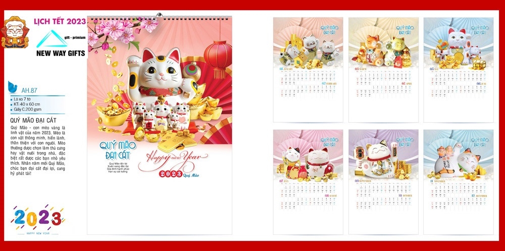 LỊCH TREO TƯỜNG MÈO VÀNG THẦN TÀI