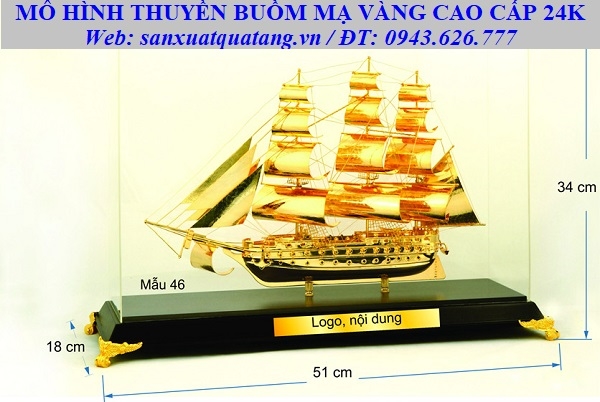 • Tên sản phẩm: Mô hình thuyền buồm mạ vàng 24k