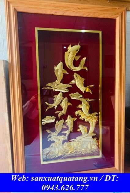• Tên sản phẩm: Tranh cá chép vượt vũ môn dát vàng cao cấp 24k