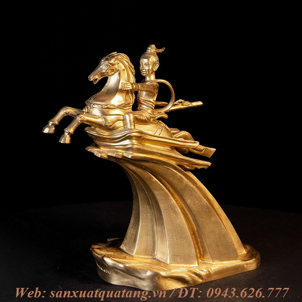 Tượng Thánh Gióng được các nghệ nhân đúc từ đồng vàng chế tác tinh xảo theo nguyên mẫu ở Sóc Sơn. Tặng tượng Thánh Gióng cho khách hàng ngoài tính thẩm mỹ còn mang hàm ý thể hiện ý chí bay cao bay xa lên tầm cao mới, thể hiện sự làm ăn ngày càng phát triển mạnh mẽ.